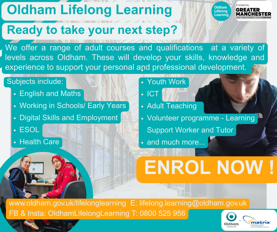For further information about all courses visit the Oldham Lifelong Learning course finder: