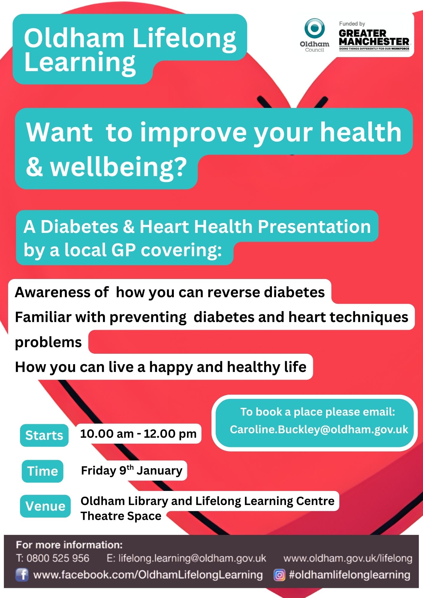 To book your place on this free event email Caroline.Buckley@oldham.gov.uk