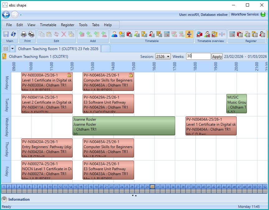 - Looking up a timetable for a learner, tutor, room or an entire centre.